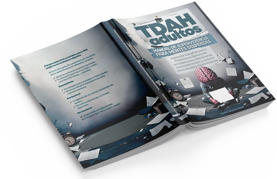 En TDAH Adultos Manual de Supervivencia para Mentes Dispersas no encontrarás soluciones mágicas ni consejos complicados, solo contiene estrategias honestas y prácticas para vivir mejor con tu TDAH, no contra él.